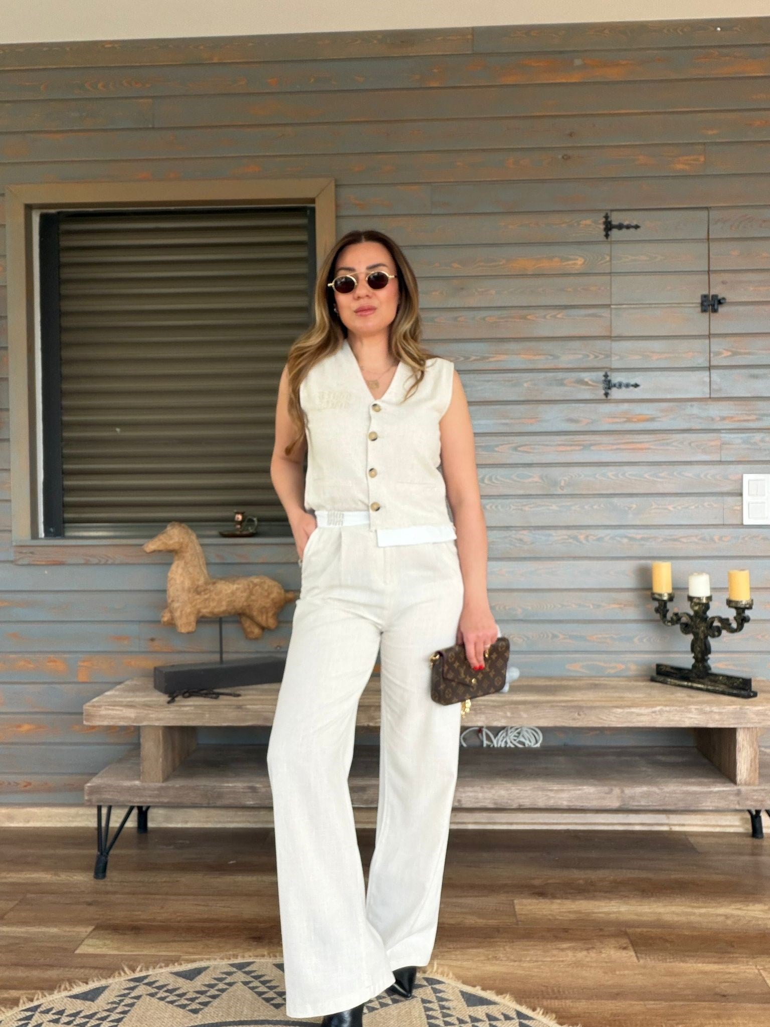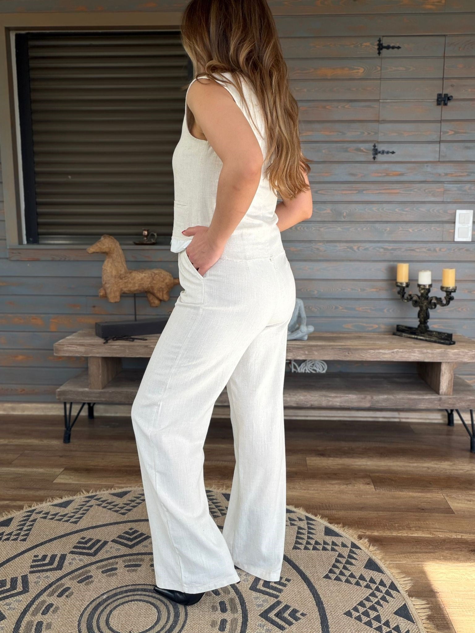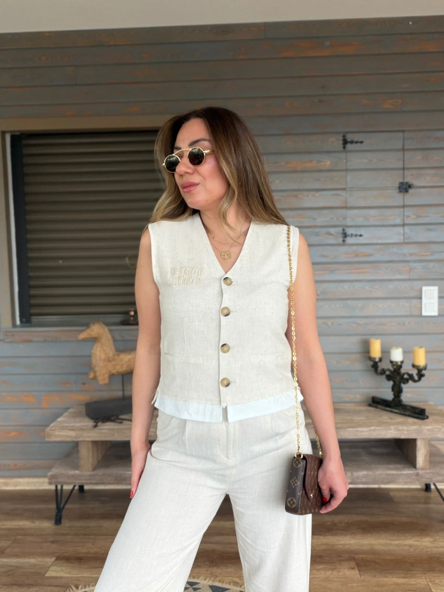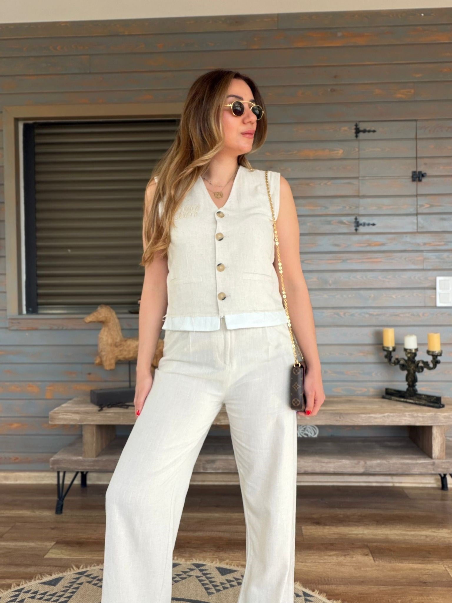 Aplike Nakış İşlemeli Keten Yelekli Takım Aplike Nakış İşlemeli Keten Yelekli Takım