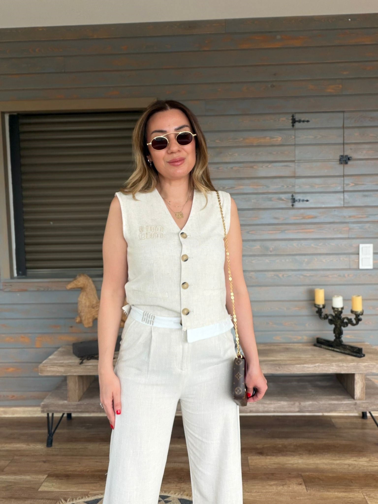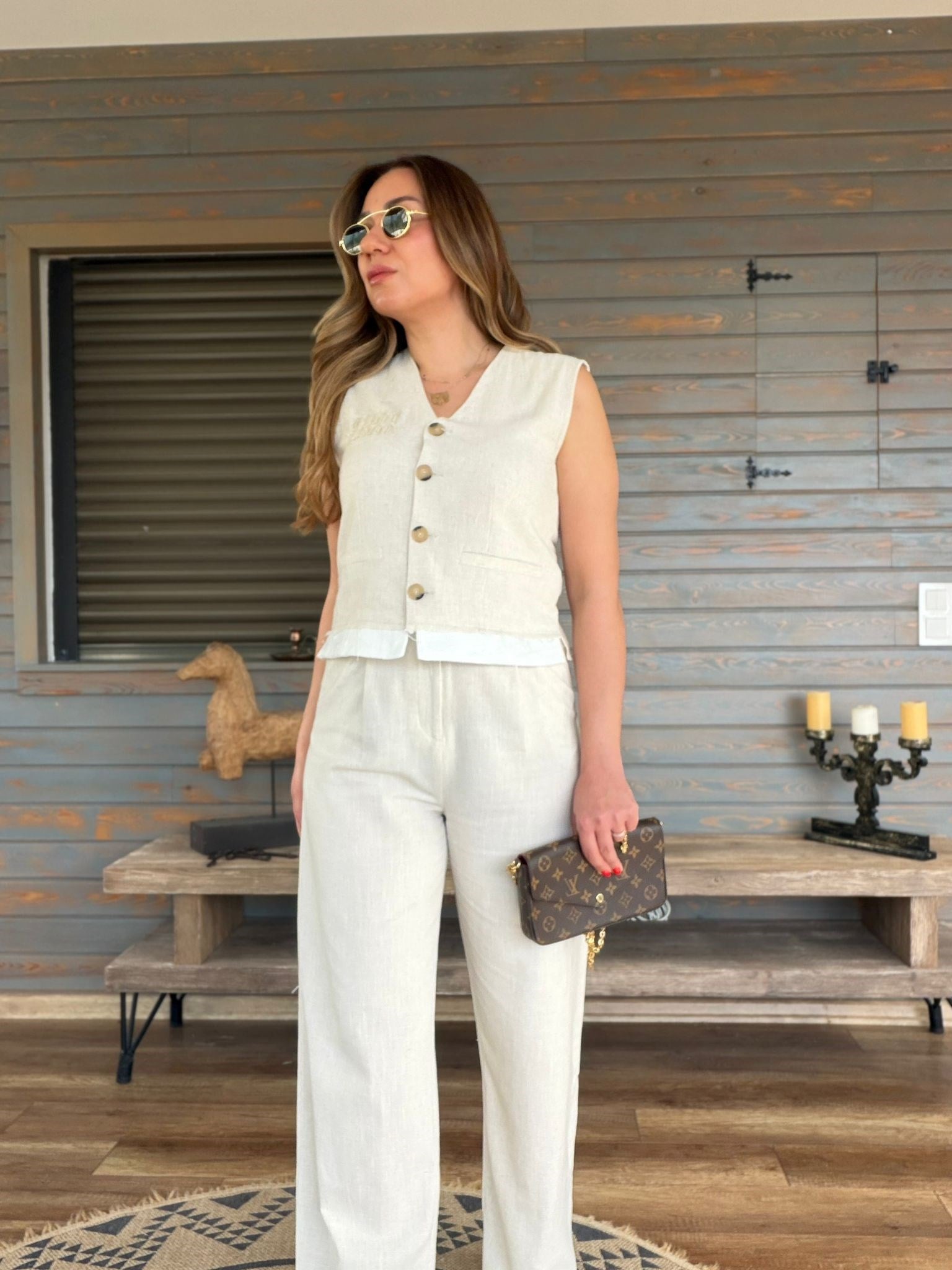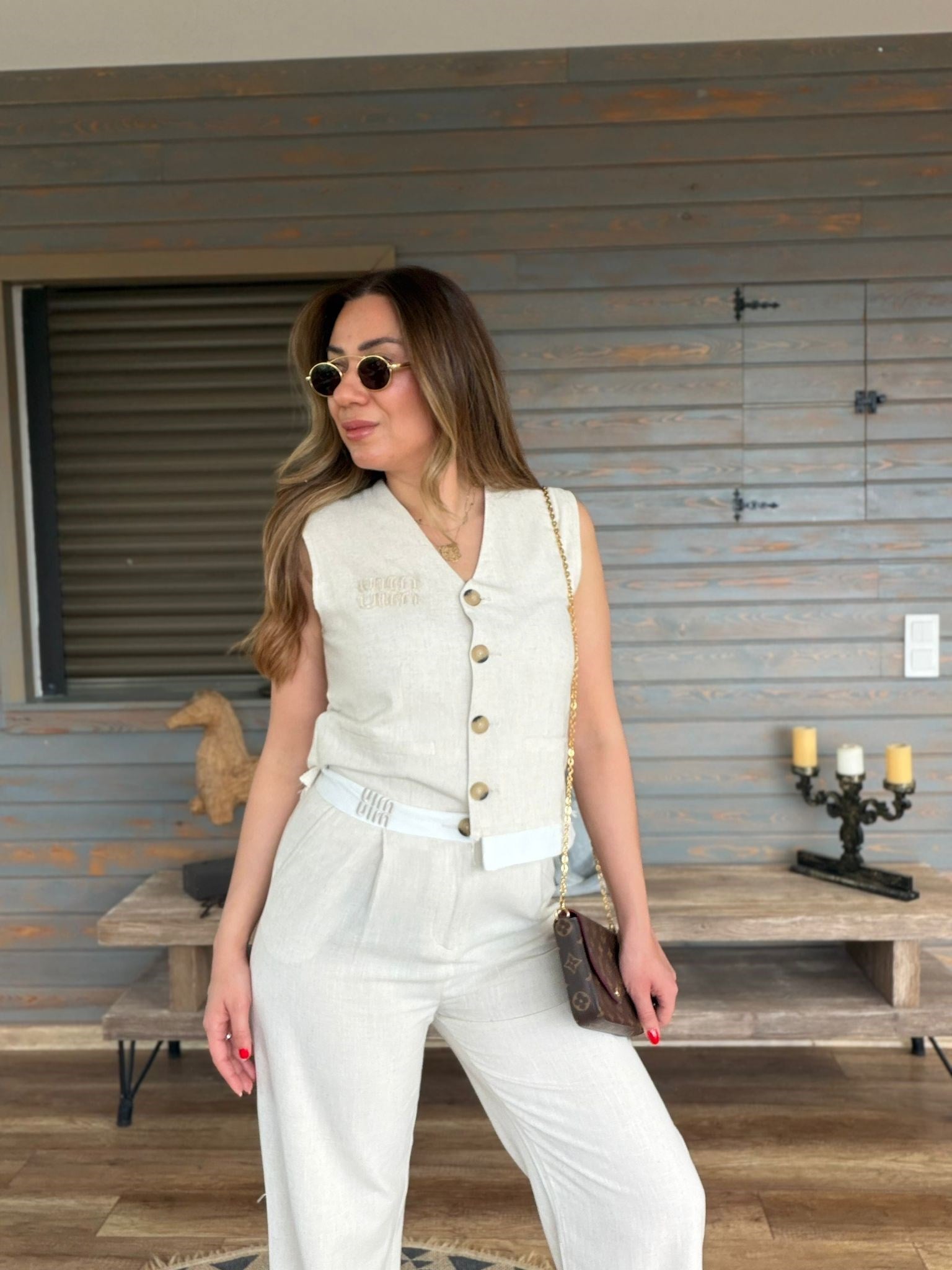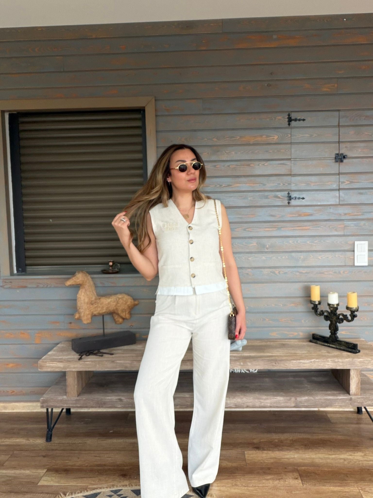 Aplike Nakış İşlemeli Keten Yelekli Takım Aplike Nakış İşlemeli Keten Yelekli Takım