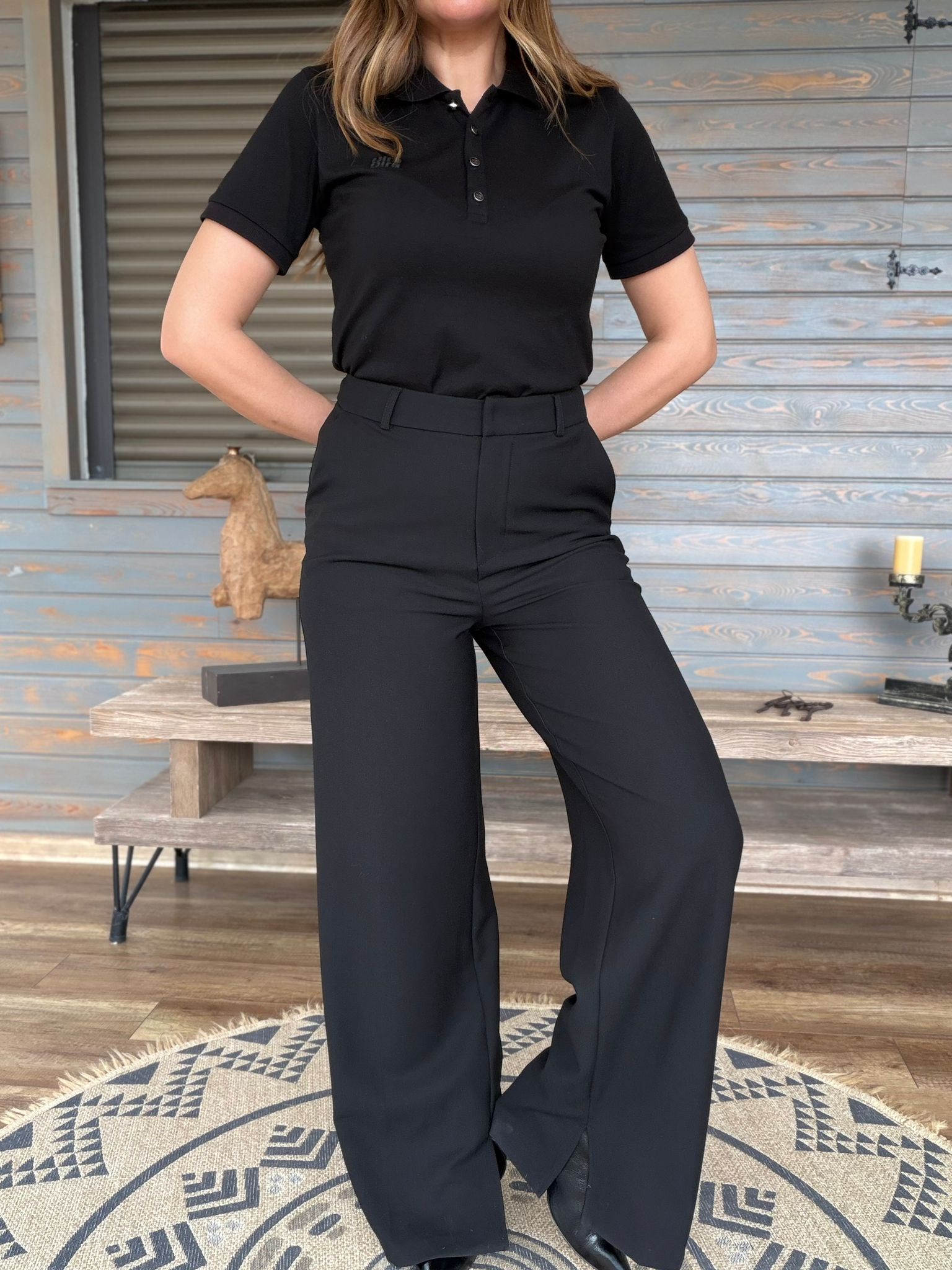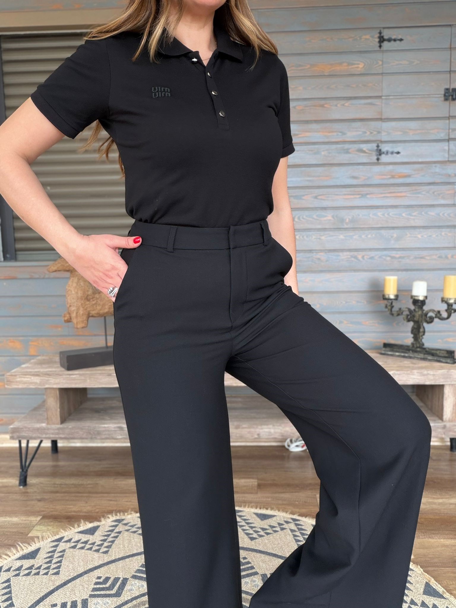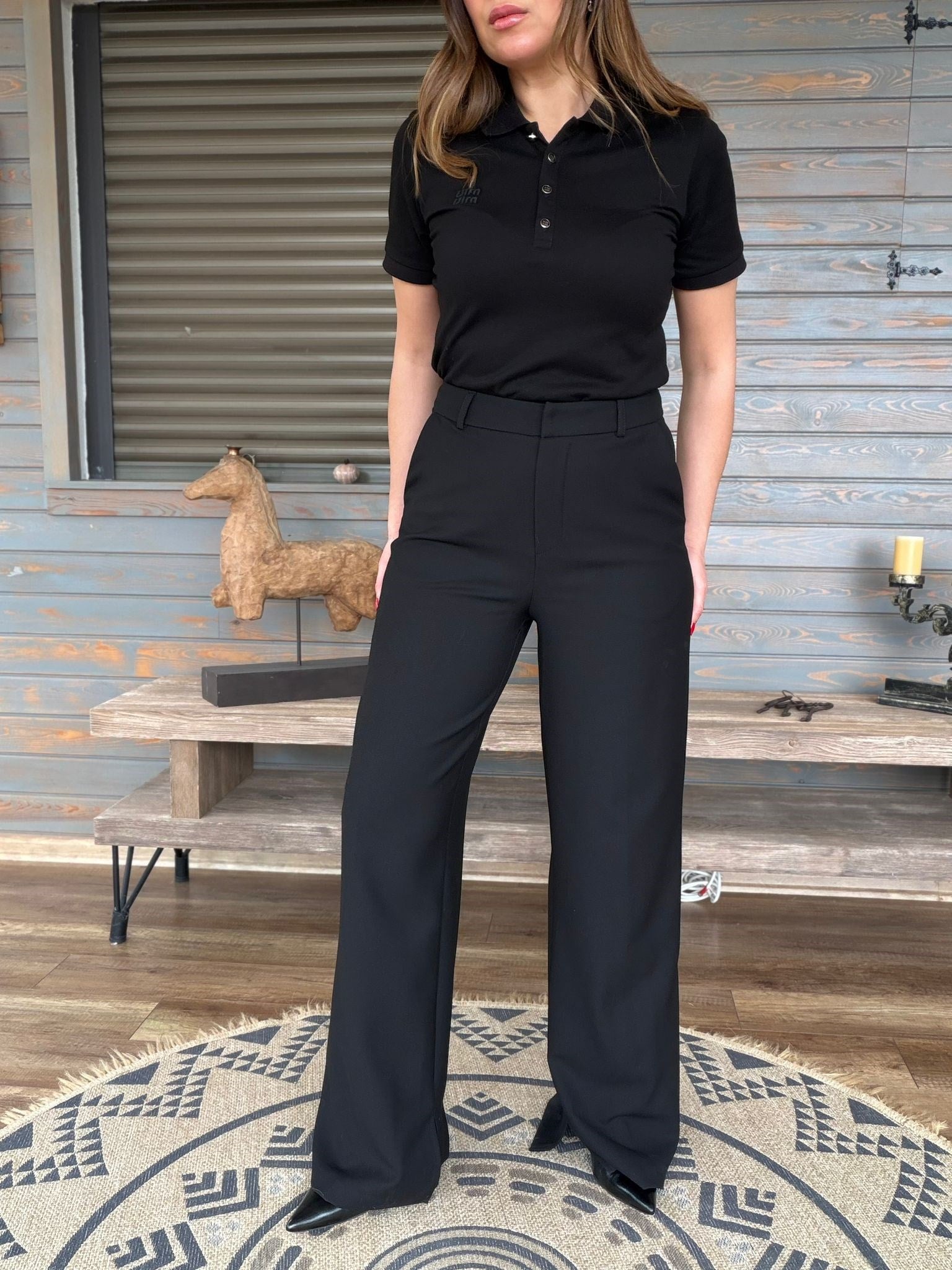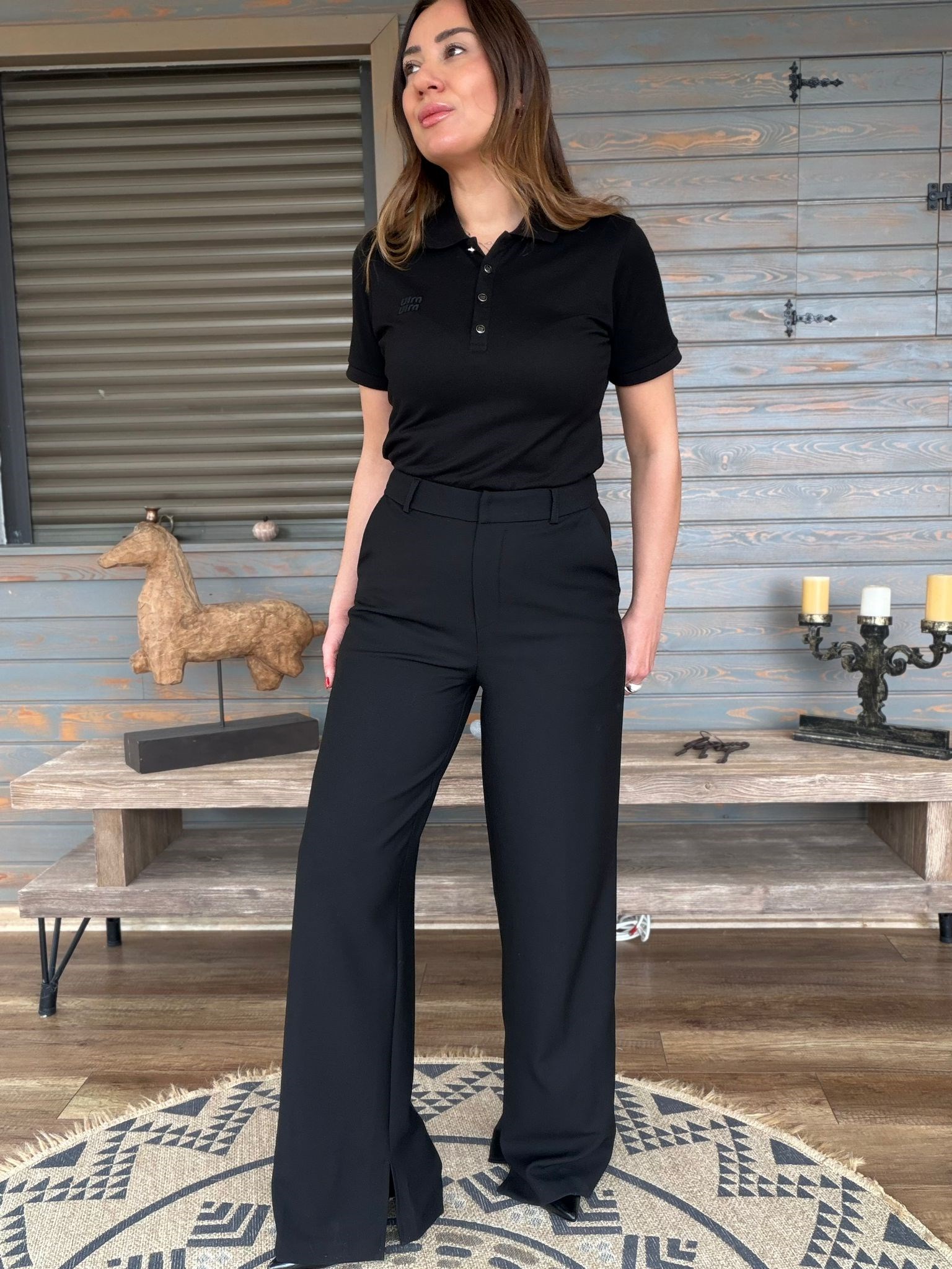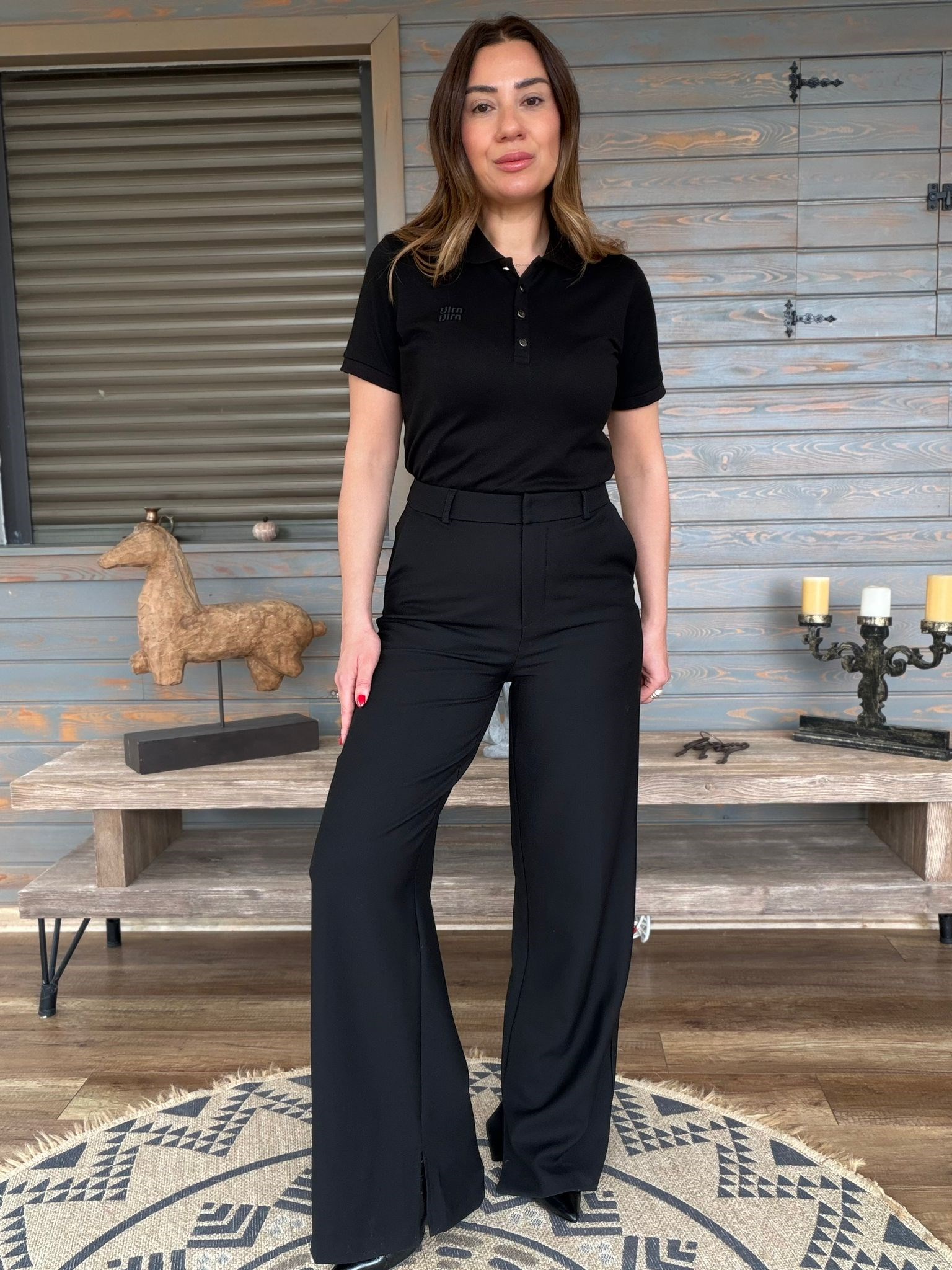 Aplike Nakışlı Yırtmaçlı Kumaş Pantolon (st007573)