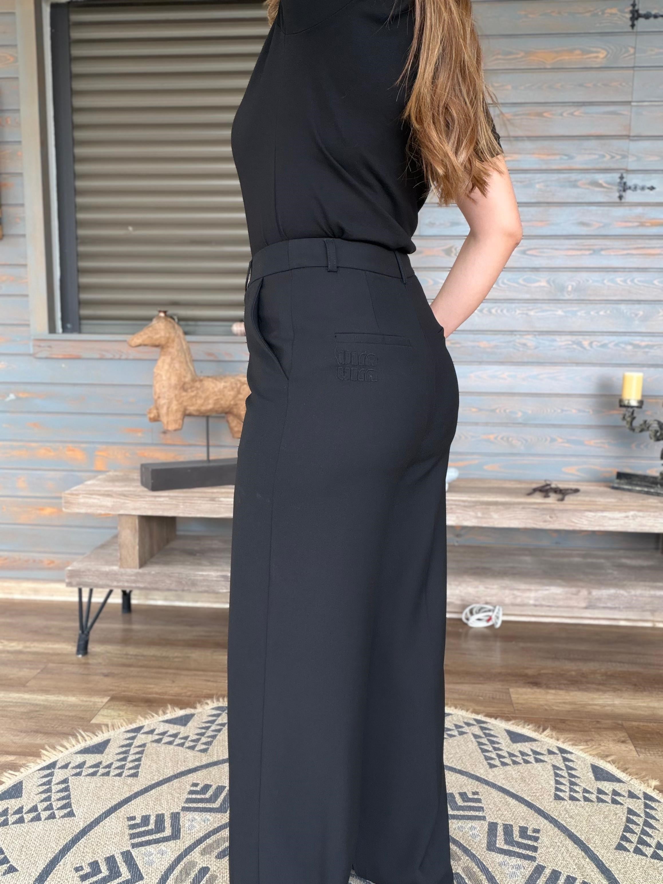 Aplike Nakışlı Yırtmaçlı Kumaş Pantolon Aplike Nakışlı Yırtmaçlı Kumaş Pantolon