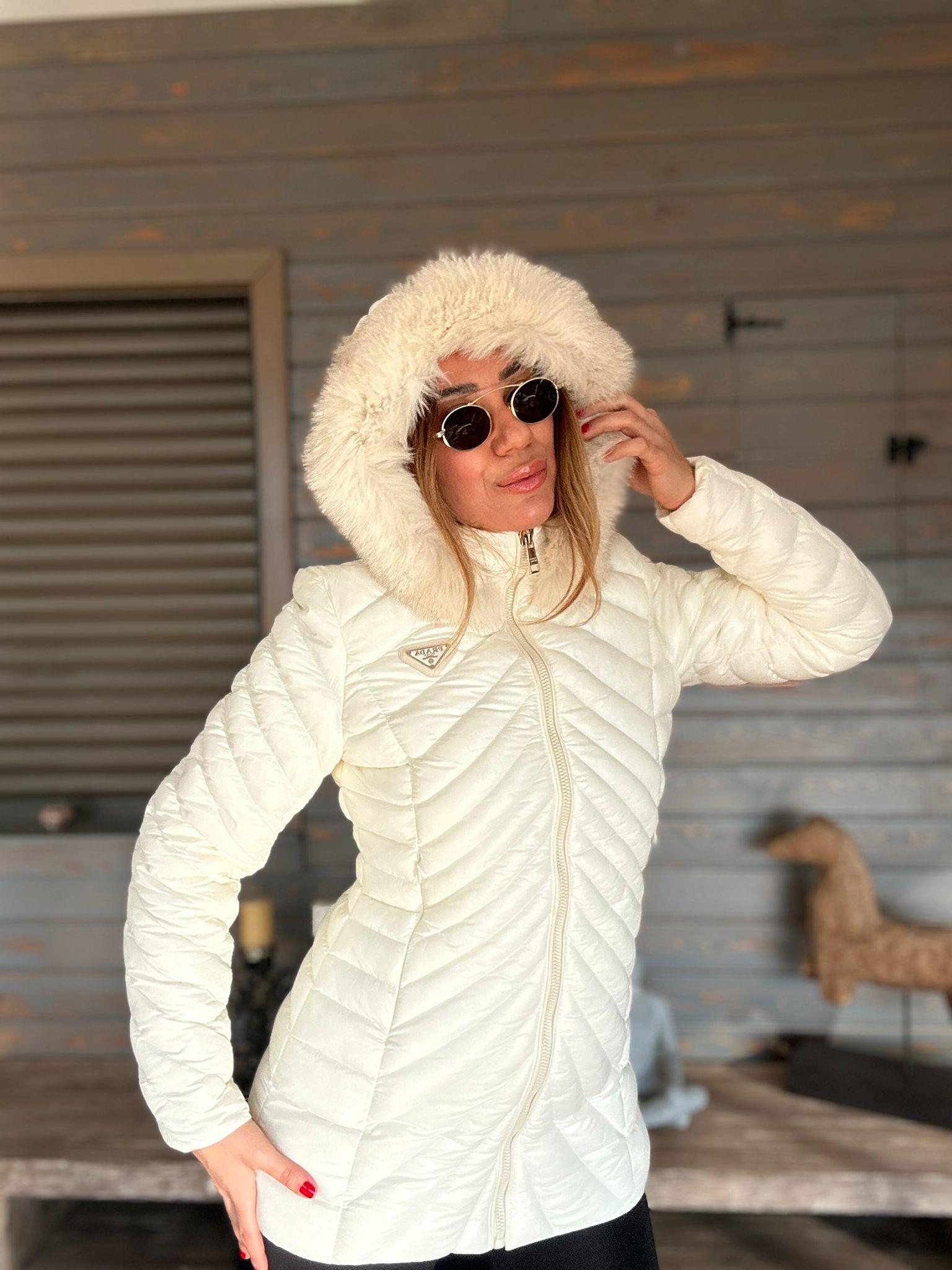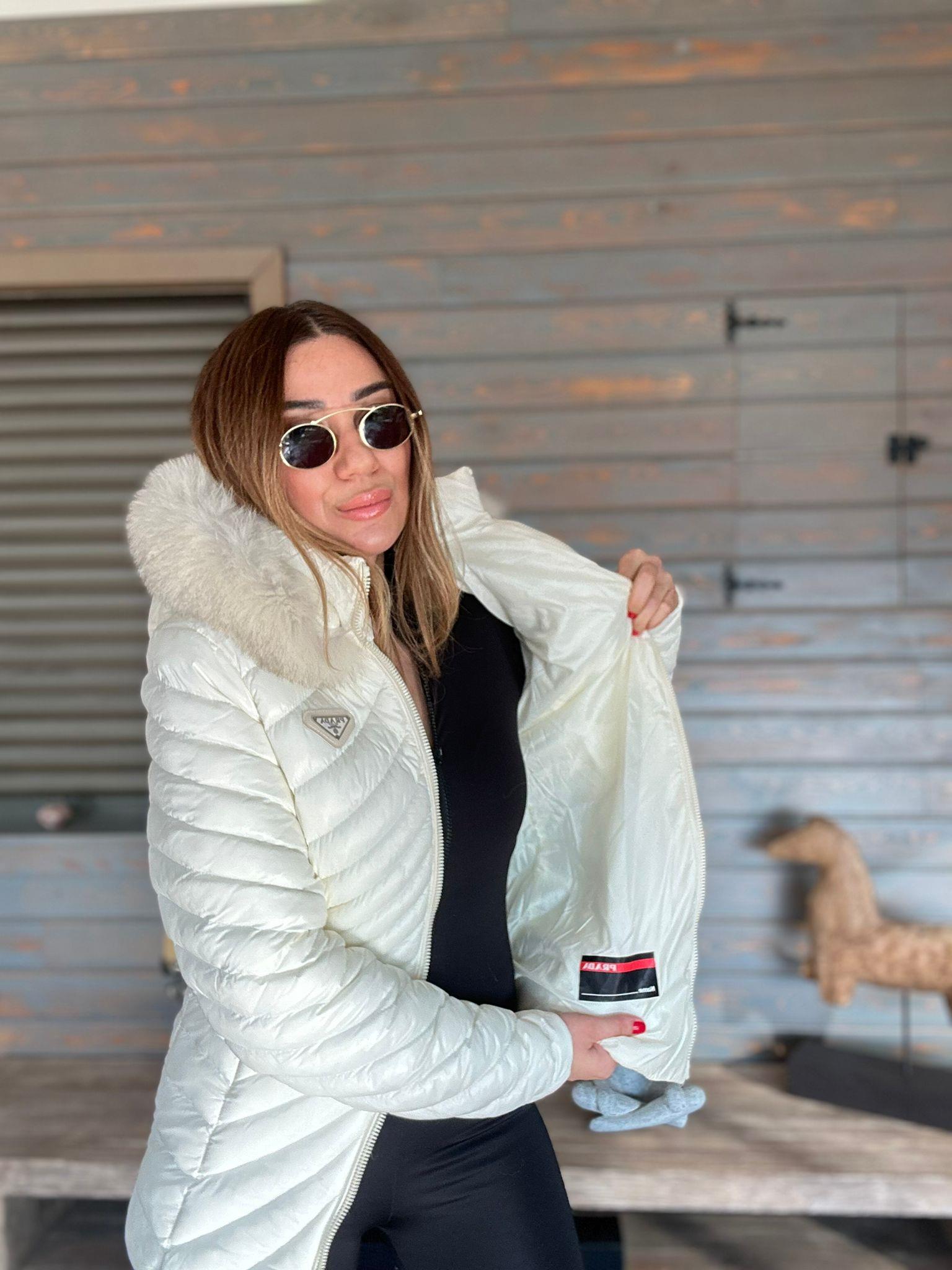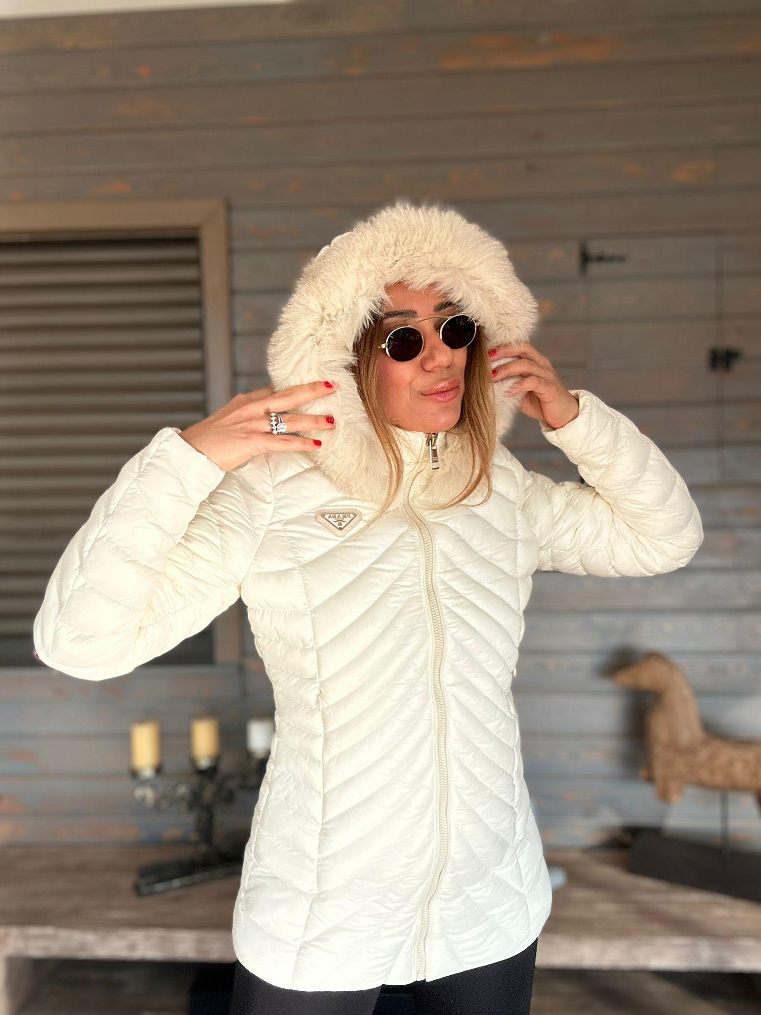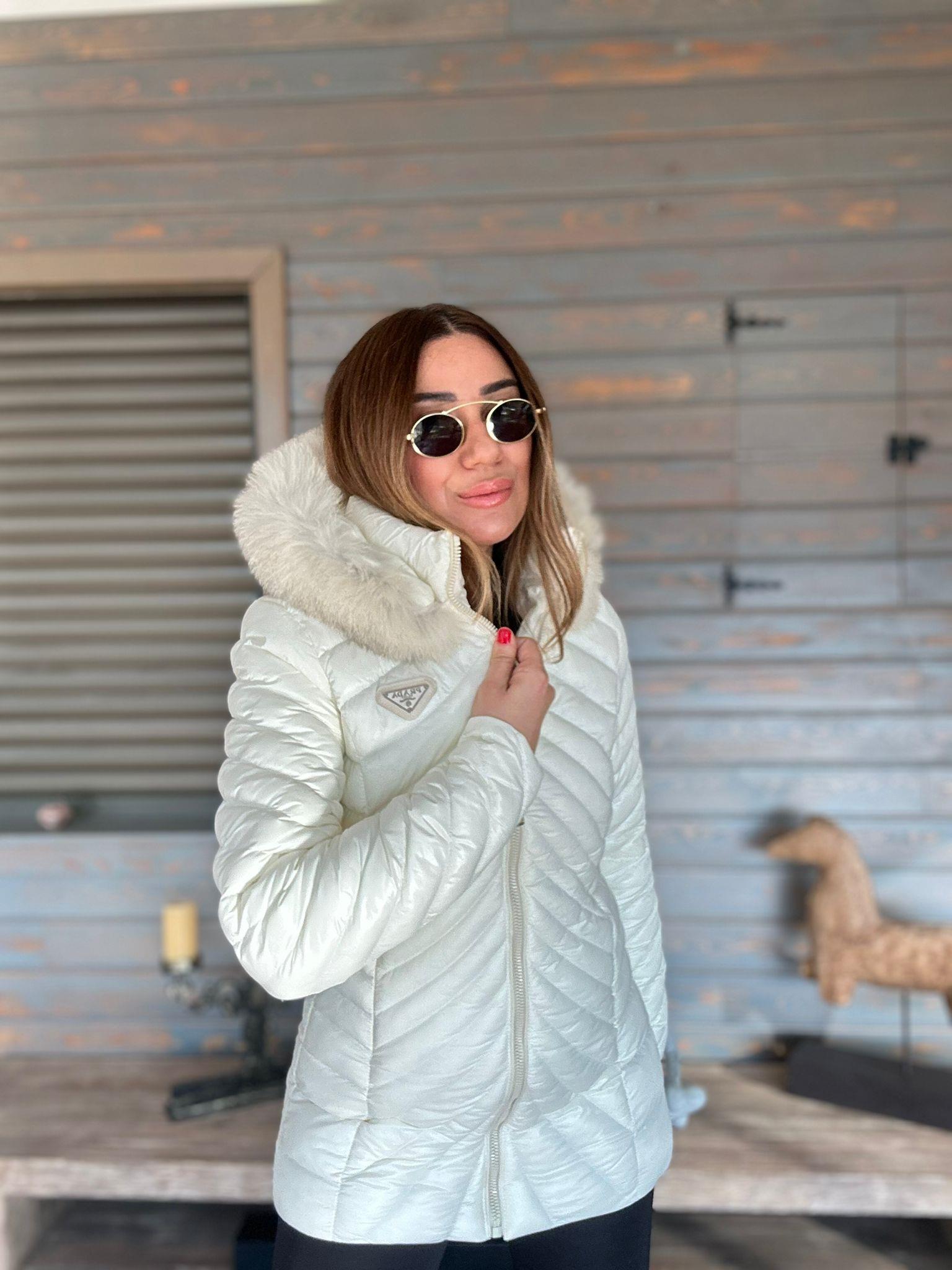 Micro Jel Kapşonu Kürklü Metal Logolu Mont Micro Jel Kapşonu Kürklü Metal Logolu Mont
