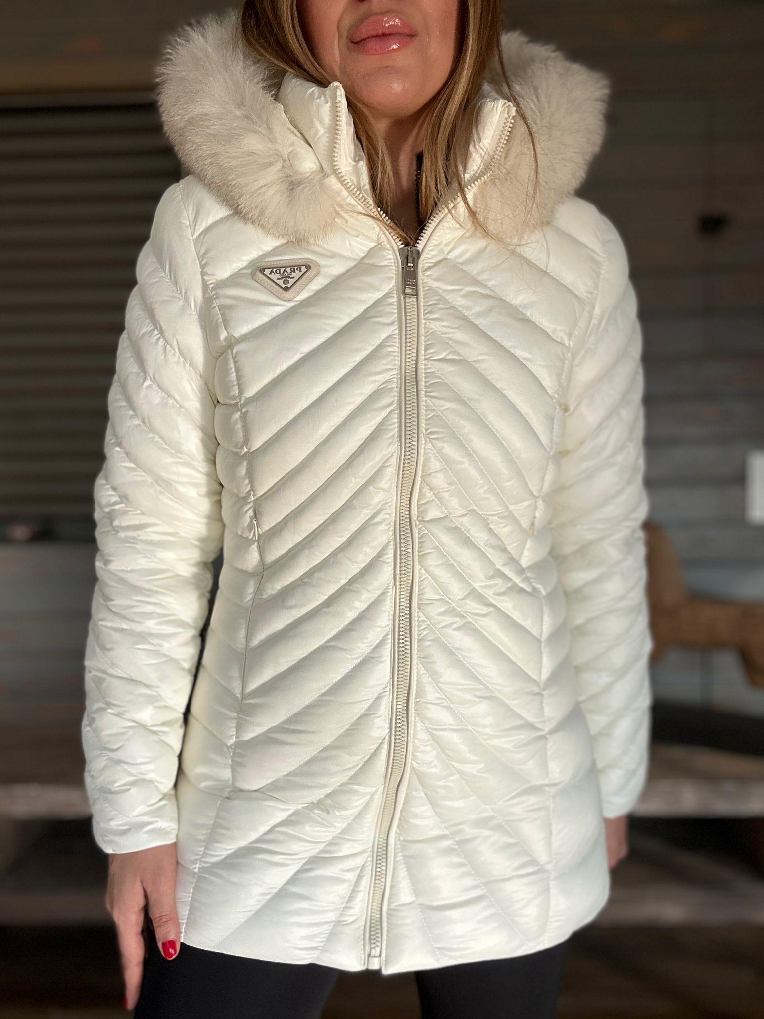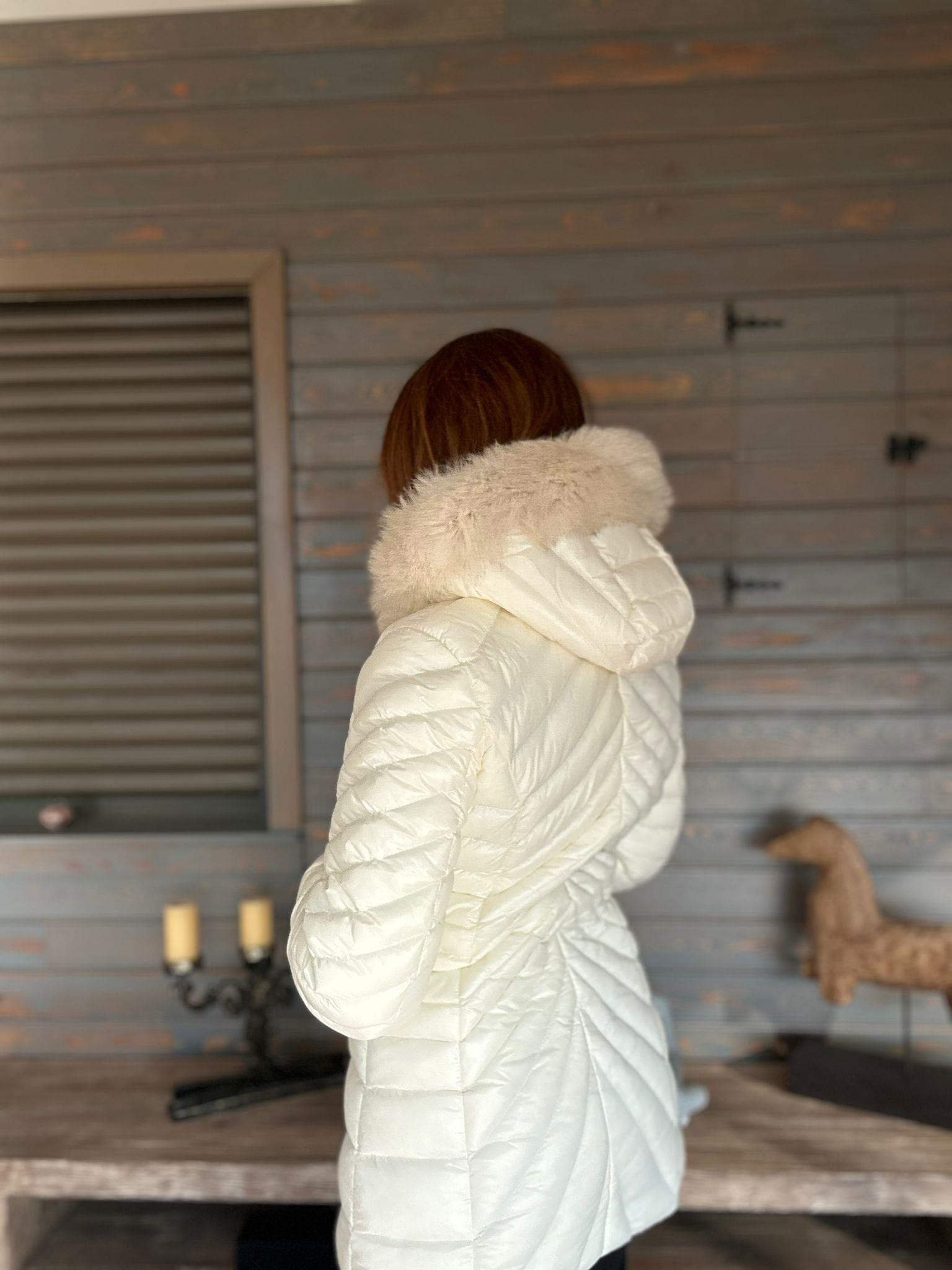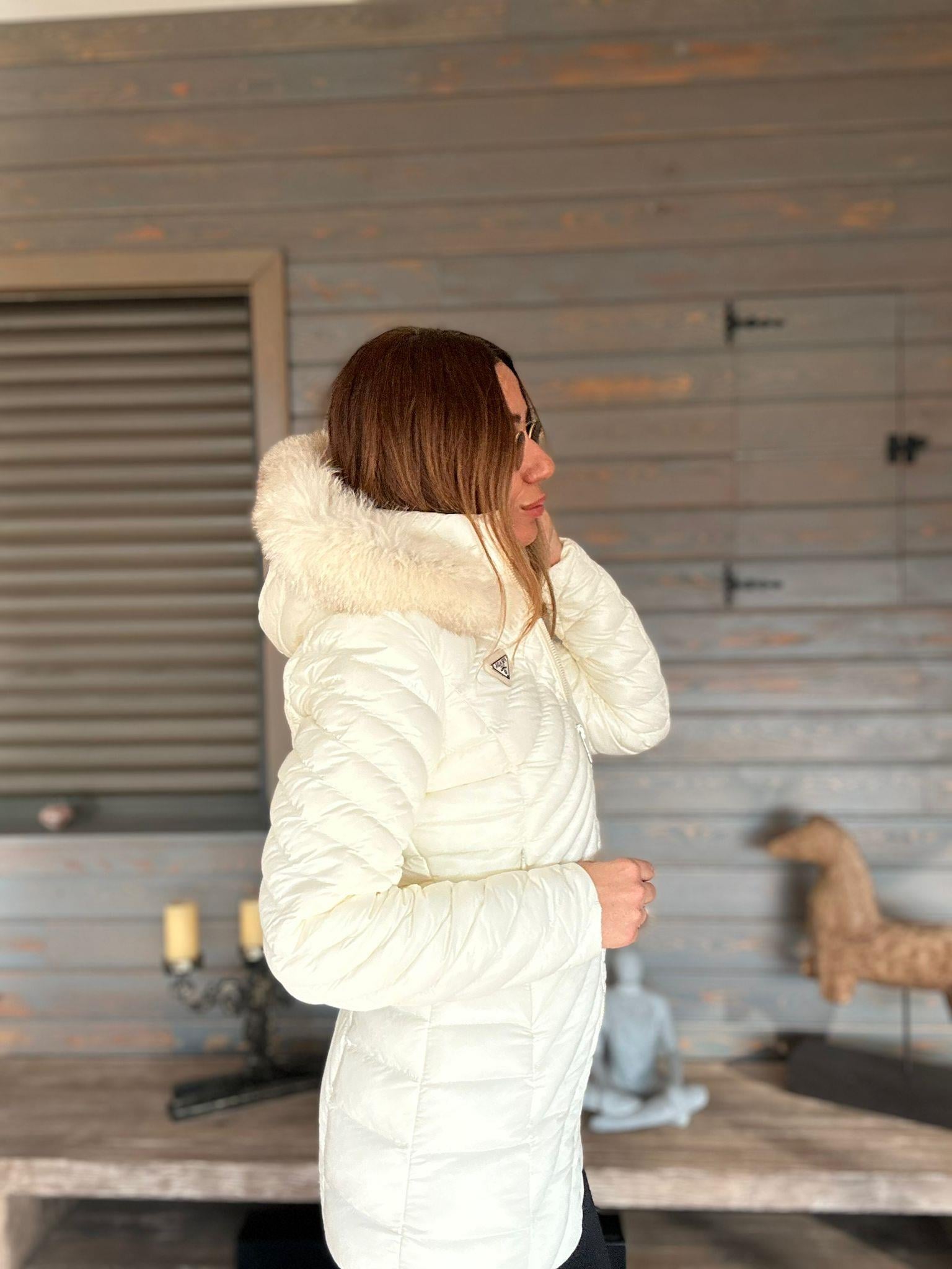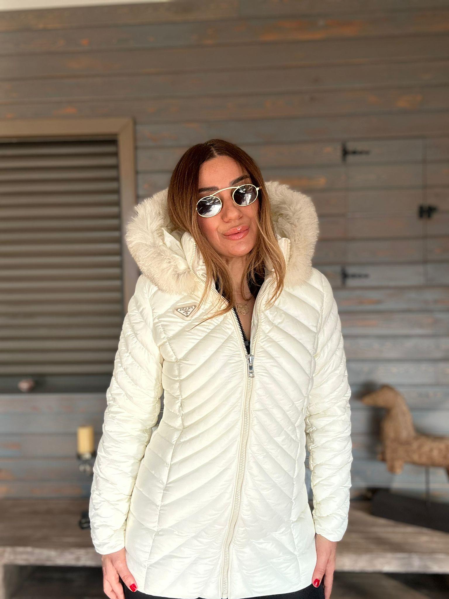 Micro Jel Kapşonu Kürklü Metal Logolu Mont Micro Jel Kapşonu Kürklü Metal Logolu Mont