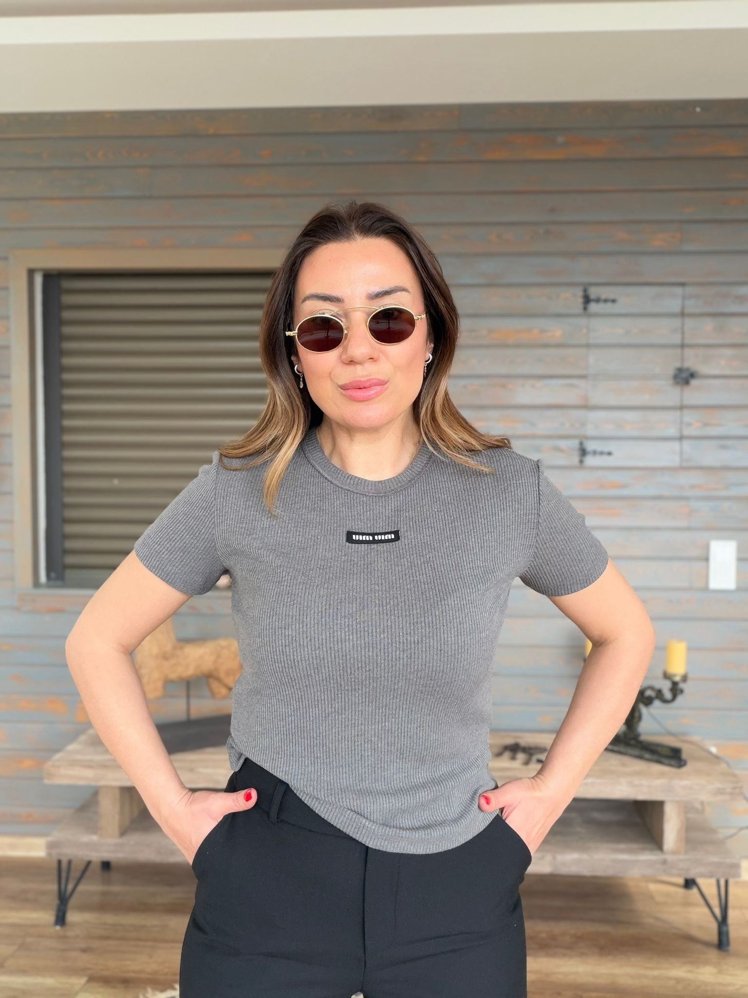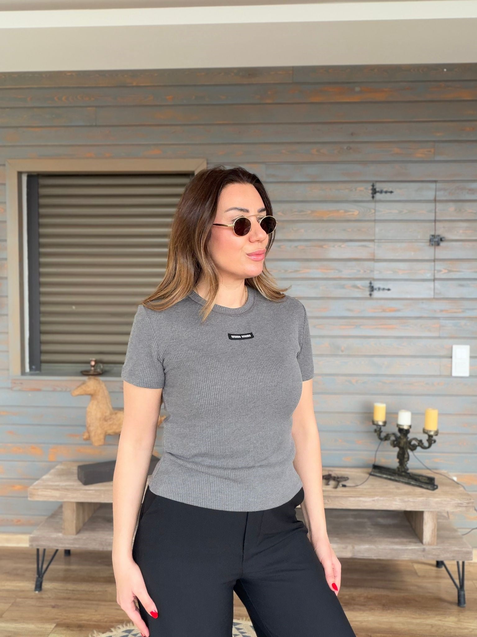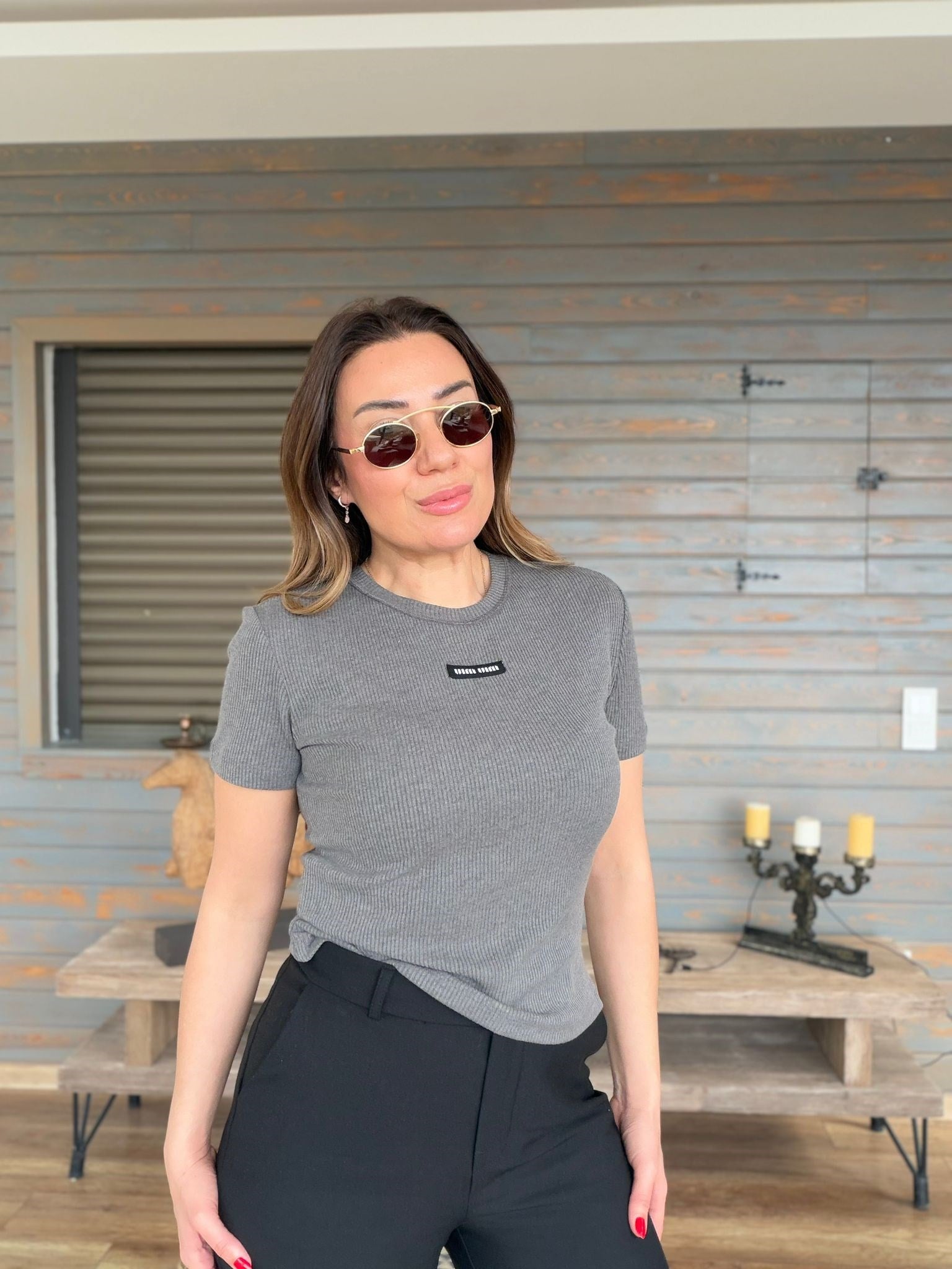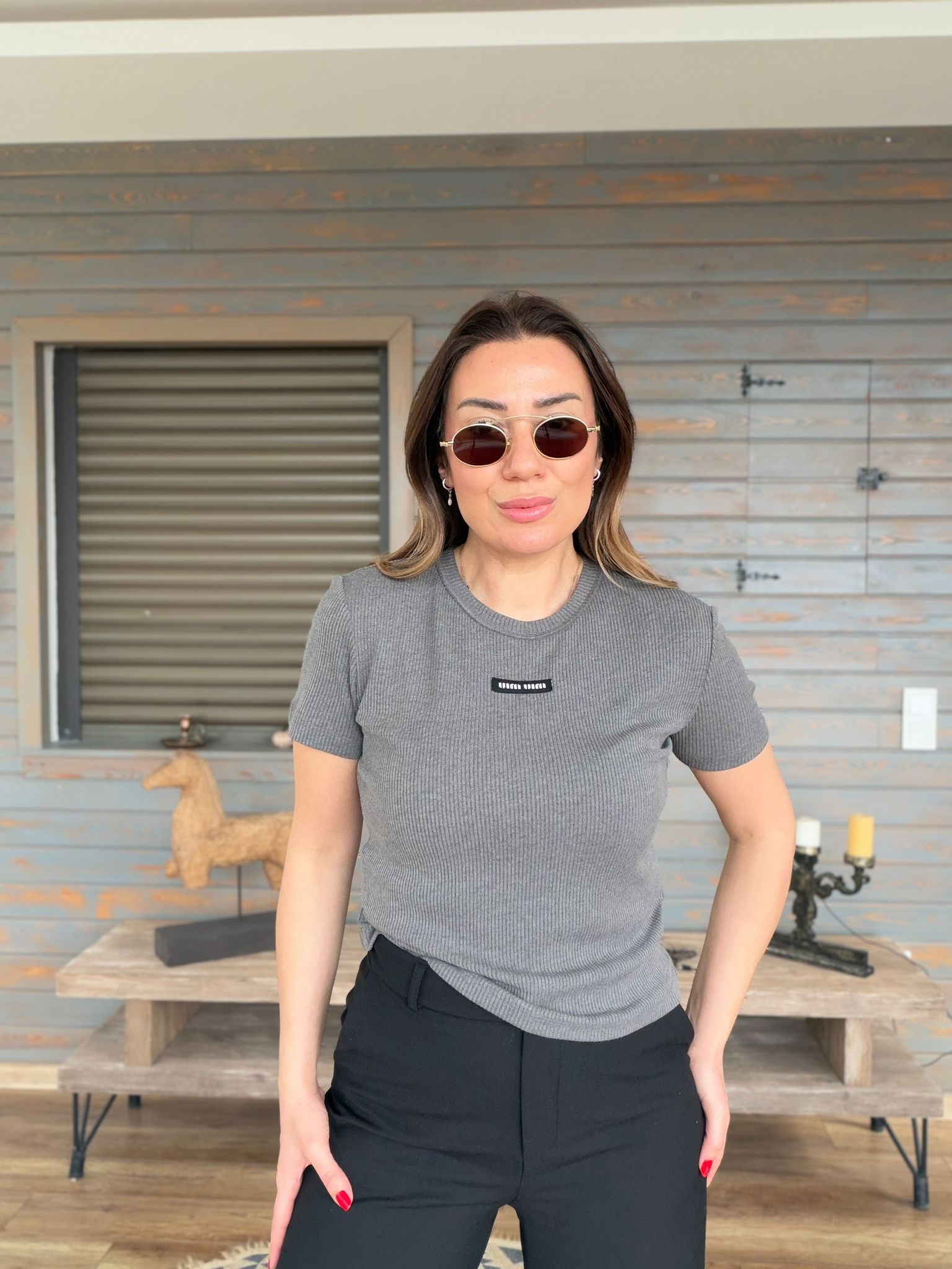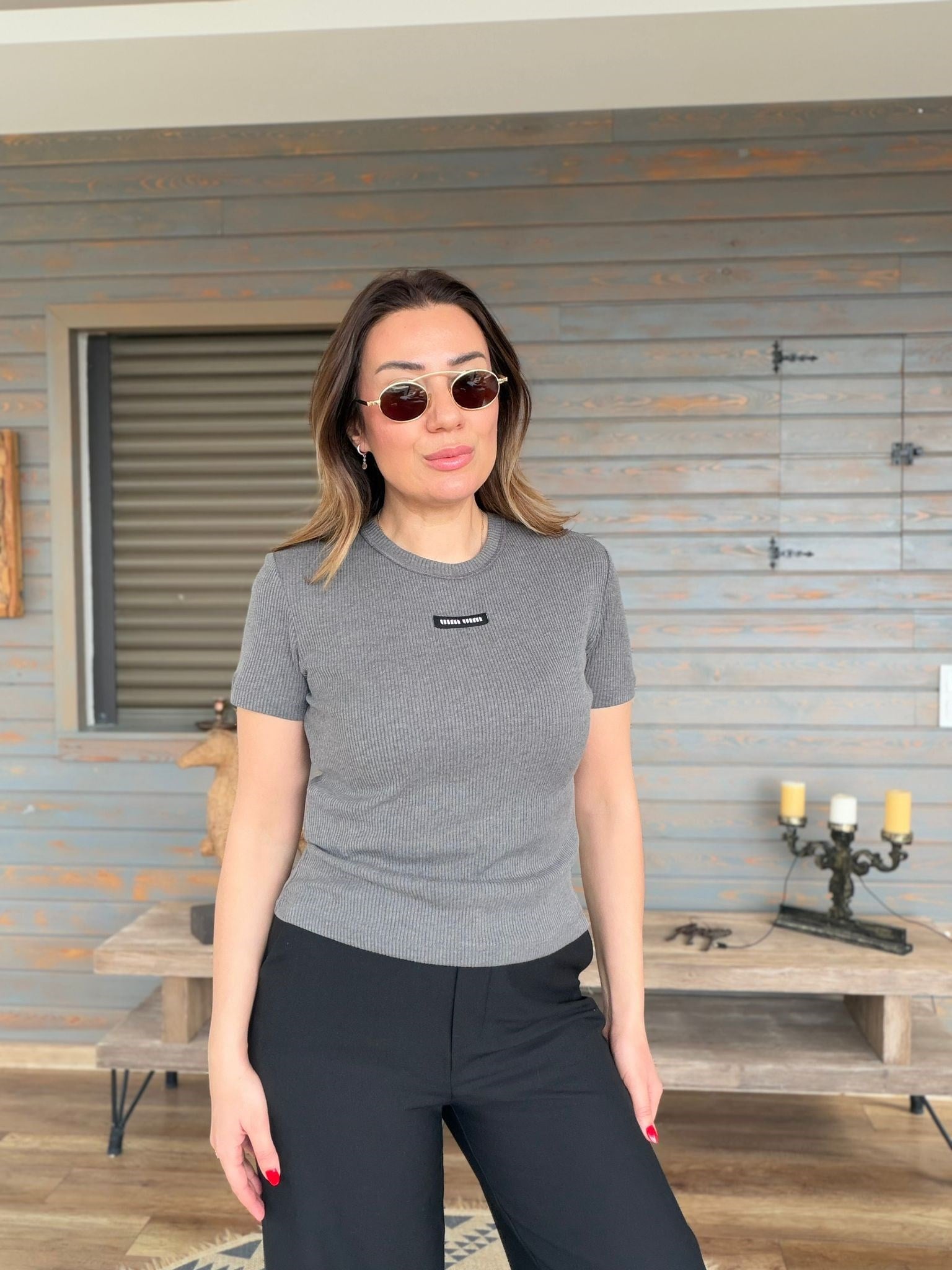 Ön Orta Armalı Bisiklet Yaka T-Shirt (st007540)