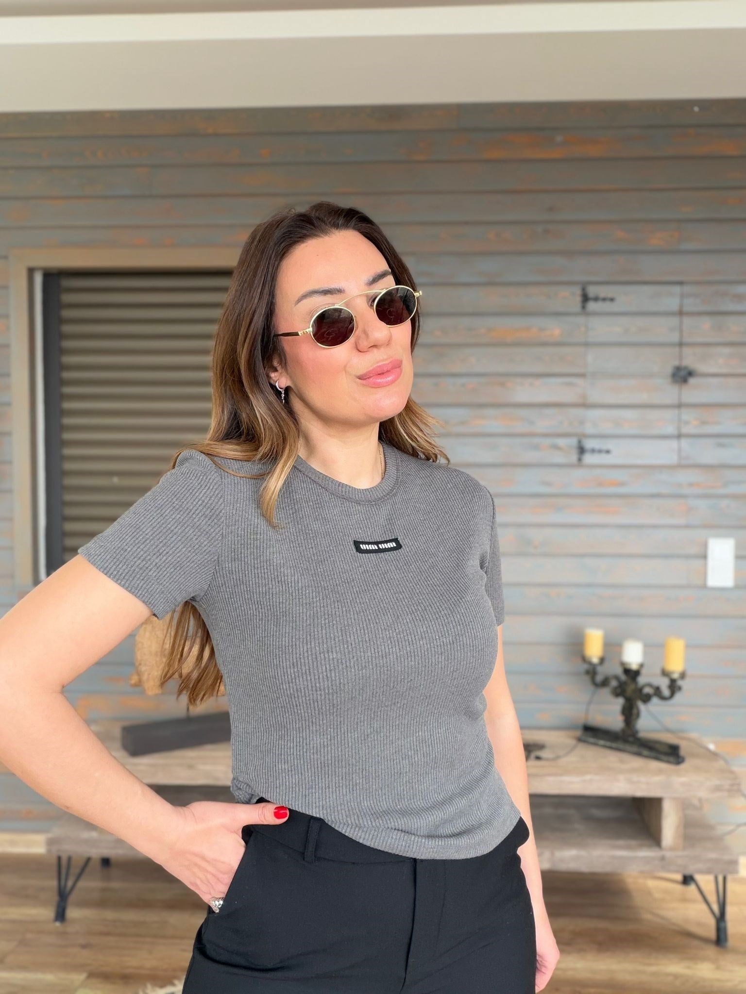 Ön Orta Armalı Bisiklet Yaka T-Shirt