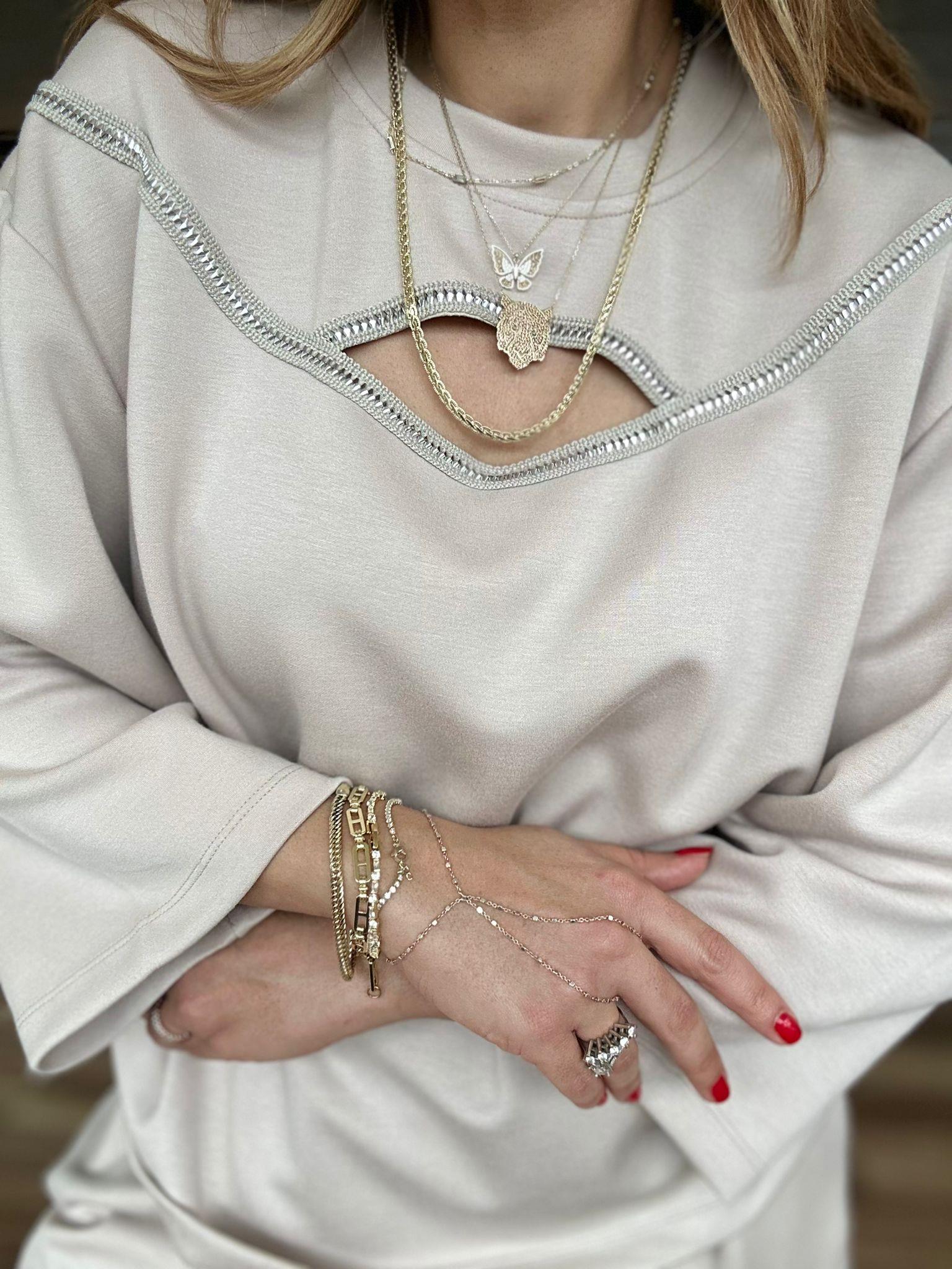Taşlı Önü Açık Bluz Alt Üst Takım